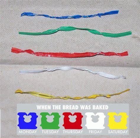 Bread Tie Colors, The Twist Ties On Loaves Of Bread Tell How Fresh They Are, You can tell how fresh the bread is by the color of the twist or plastic tab used to hold and each day has a different color twist tie they are monday blue. Fact Check Bread Tag Code Snopes Com, Can you tell which day a loaf of bread was baked by the color of its i looked in the grocery store and the bread wrappers do have different colored twist ties.